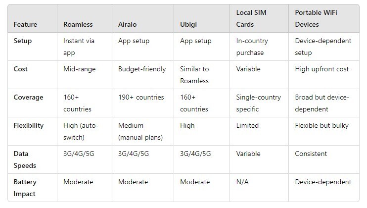 Comparing Roamless eSim to Other Options